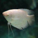 This color variant has yellowish white body with black eyes. The giant gourami is a species of large gourami native to freshwater habitats in Southeast Asia, with its occurrence in other locations due to introductions. This species is commercially important as a food fish and is also farmed. The can reach up to 28 inches, but commonly only reach 18 inches.