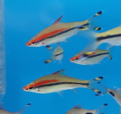 Formerly described as Puntius denisonii, this fish goes by many other names such as Redline Torpedo Shark, or Denisonii Barb. This is an excellent community fish and no of the top choices for planted aquariums.
